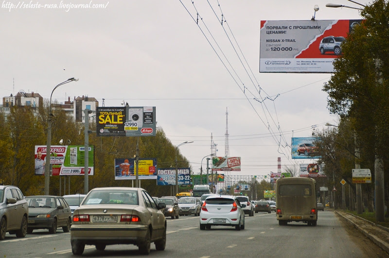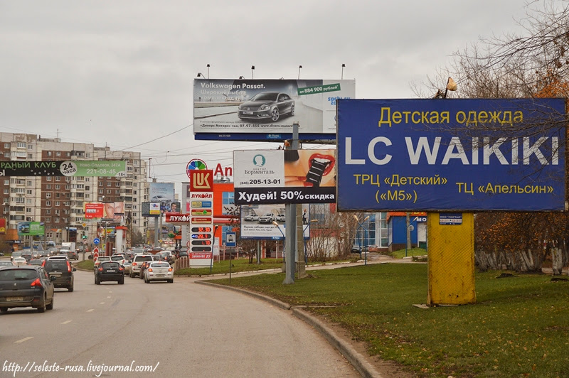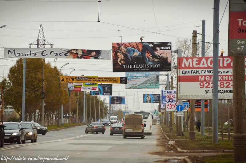 Посмотрим, как выглядят улица Ново-Садовая и Московское шоссе, напрочь захламлённые рекламными щитами.